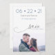 We just love the look of this contemporary and simple Save the Date - features your favourite photo on the bottom with a soft edge overlay that will blend the top of your photo into the white background. Dusty blue accented with a soft grey text - large numbers at the top , your names, then a short message - we chose (It's finally happening) due to all of the Covid Crisis your wedding plans may have been delayed - a playful combination of inked calligraphy with a few drips and a nice serif font is actually an image but we created it so you can change those colours as well - highlight the image on the left column and you will see the 2 colours on the right, change them to what ever colours you like to fit your wedding theme - on the back simple text message of what town your wedding will be in and a message that a "formal invitation will follow" - the word 'formal' is also in our fun calligraphy and that colour can also be changed. This is an easy to customize template you will love working with .