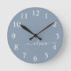 Dusty Blue Modern Script Elegant Monogram Name Round Clock