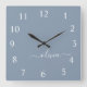 Dusty Blue Modern Script Elegant Monogram Name Square Wall Clock