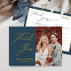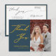 Dusty Blue Elegant Gold Script Modern Photo Minimalist Wedding Thank You Postcard. Express how thankful you are to your friends and family who made your wedding an extra special with this beautiful wedding photo thank you card. All the texts are pre-arranged for you to personalize easily and quickly with your own words.