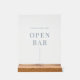 Le panneau acrylique de mariage moderne et élégant pour votre barre ouverte présente un design bleu poussiéreux minimaliste avec des lignes modernes, une police de script élégante et une police serif élégante. Le panneau acrylique peut être commandé avec ou sans support en bois. Découvrez les objets correspondants dans la collection "Dusty Blue Modern Elegant".