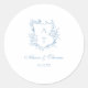 Elegant dusty blue script floral monogram crest wedding classic envelope seal sticker.