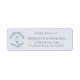 Dusty Blue Monogram Wreath RSVP Return Address Mailing Label... A coordinating dusty blue and light grey-blue return address label for your wedding RSVP envelopes. The label features a leafy botanical wreath displaying the bride's and groom's monogram initials next to the bride's and groom's names and address. All text is easily revised on the personalization template.
