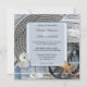 Elegant wedding invitation with a nautical theme, featuring rustic wood, ropes and an anchor with a beach. The colour setting is predominantly dusty blue, creating an atmosphere in line with northern seas.