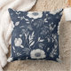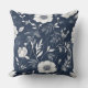 Dusty Blue Navy Blue White Floral Throw Pillow