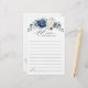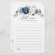 Dusty blue floral Bridal Shower Advice card featuring elegant bouquet of navy blue, royal blue , white , gold, champagne ivory, blush colour rose , ranunculus flower buds and sage green eucalyptus leaves and elegant watercolor bouquet. Please contact me for any help in customization or if you need any other product with this design.