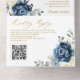 Dusty Blue Navy Champagne Ivory Wedding QR Code All In One Invitation