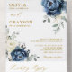 Dusty blue floral QR code wedding Invitation featuring elegant bouquet of navy blue, royal blue , white , gold, champagne ivory, blush colour rose , ranunculus flower buds and sage green eucalyptus leaves and elegant watercolor bouquet. Please contact me for any help in customization or if you need any other product with this design.