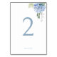 Dusty Blue on White Hydrangea Wedding Table Number