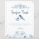 Keep guests entertained with this elegant dusty blue pacifier hunt game sign. Featuring delicate florals and a sweet bird illustration, this sign adds charm to your baby shower while guiding guests through a fun and interactive game. Fully customizable to match your theme.