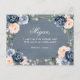 Dusty blue floral geometric will you be my bridesmaid postcard featuring elegant bouquets of navy / Dusty blue, white , blush , peach rose and sage green eucalyptus leaves and elegant glitter geometric neutral frame. Please contact me for any help in customization or if you need any other product with this design.