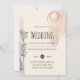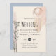 Modern BOHO wedding theme is featured here with colours dusty blue and peach. Graphics of dream catcher and herbs create a lovely aesthetic, warm and inviting for your woodland, outdoors, garden, barn boho-themed wedding.