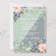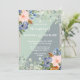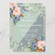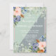 This stunning wedding invitation features a split background of dusty blue and light green with lovely flowers, eucalyptus greenery and a peach blush border. You might feel as though you were standing in a glorious garden. White lettering and touches of calligraphy are a perfect accompaniment to the beautiful flowers. A lovely design choice to set the tone for your wedding celebration. For any design question or additional customization and / or matching items, just send an email to charmdesignstudio@rcn.com and we'll be delighted to assist. View the collection link on this page to see all of the matching items in this beautiful design.