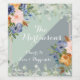 This stunning wedding wine label features a split background of dusty blue and light green with lovely flowers, eucalyptus greenery and a peach blush border. You might feel as though you were standing in a glorious garden. White lettering and touches of calligraphy are a perfect accompaniment to the beautiful flowers. A lovely design choice to set the tone for your wedding celebration. For any design question or additional customization and / or matching items, just send an email to charmdesignstudio@rcn.com and we'll be delighted to assist. View the collection link on this page to see all of the matching items in this beautiful design.