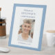 This simple, yet elegant, pedestal confirmation welcome sign is perfect for a boy with its beautiful colour palette of dusty blue and white. The design, which includses a photo, features your text written in a classic serif font accented by a simple script font. Designed as part of my Tailored Elegance collection. Be sure to browse the other product to create a sophisticated, coordinated look for your event. If you need additional help adjusting this template, take advantage of Zazzle's free service at https://www.zazzle.com/live or contact me through Zazzle's messaging system. Please note, I create the designs, but all printing and shipping is done by Zazzle at its production facilities, so if there is any issue with your order, please contact their customer support at 1-888-892-9953 or https://www.zazzle.com/about/ask.