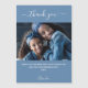 A dusty blue background colour. White, large hand lettered script with swashes and the text: Thank You. Personalize and add your photo, thank you note and name.