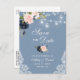 Dusty Blue Pink Blush Floral Save the Date Announcement Postcard