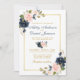 Dusty Blue Pink Blush Floral Wedding Gold Frame Invitation