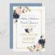 Elegant Watercolor Dusty Blue Pink Blush Floral, Gold Frame Wedding Invitation Card