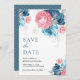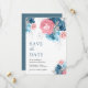 Dusty Blue Pink Floral Rose Wedding Save The Date