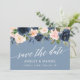 Dusty Blue Pink Floral Save The Date Card