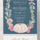 Dusty Blue Pink Roses White Pumpkin Wedding All In One Invitation