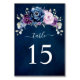 Dusty Blue Purple Navy Lilac Blooms Wedding Table Number