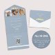 Modern and romantic, this dusty blue all-in-one wedding invitation features three photo slots, a stylish faux gold lovebirds design, and a built-in QR code for easy RSVP access. Perfect for eco-conscious couples—no envelope is required! The clean layout includes space for your wedding website and personalized details, making this a convenient and elegant choice for your celebration.