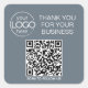 Share a final thank you with this sticker attached to the package or receipt. Clean, simple typography and composition. Placeholder for your logo and prominent QR code to direct traffic to follow-up information or offers. Great way to add a simple personal touch while reaching out for further business. Need help personalizing or customizing? Contact us. We're happy to help.