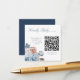 These QR code wedding rsvp response cards feature dusty blue and peach garden roses and white cotton blooms. There's space for your own QR code and wedding website. View our collection to find matching products.