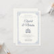 Featuring a delicate dusty blue baroque floral border and a hand-drawn gazebo illustration, this design offers a graceful blend of vintage elegance and romantic serenity. Printed on a soft cream background with refined script typography, it’s perfect for couples planning a classic, chapel, or outdoor celebration.