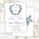 Dusty Blue Romantic Floral Wreath Wedding Invitation
