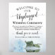 This beautiful "unplugged" sign provides a graceful means of welcoming guests to your wedding ceremony while respectfully requesting them to refrain from using their phones, cameras, or any other devices that may cause disturbance. The sign showcases a sophisticated layout, adorned with intricate calligraphy and a captivating long-stemmed rose in shades of pale dusty blue or powder blue, reflecting in water with gentle ripples. The customizable message conveys a warm invitation, encouraging guests to be fully present and engage in the ceremony without any interruptions. It states, "Please turn off your phones, cameras, and devices so we can all enjoy the ceremony without disruptions."