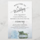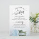 These wedding programs are elegant and tasteful, while still being budget friendly. The design features a single long-stemmed light dusty blue or powder blue coloured rose lying on its side, reflecting in a pool of water with waves and ripples. The typography features lacy black script calligraphy, and there is room for details on the ceremony, the bridal party, and a short thank you.