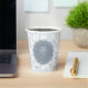 Elegant romantic dusty blue floral pattern rose wedding paper cups with bride and grooms monogram.