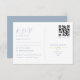Minimalist dusty blue wedding RSVP card with gold rope heart and modern layout. Includes response checkboxes and meal choices plus a custom QR code for convenient RSVP online. Pairs perfectly with our matching dusty blue suite. For help or questions: bpkolman@gmail.com