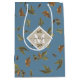 Dusty Blue Rustic Brown Leaves Monogrammed Medium Gift Bag