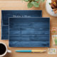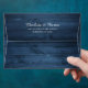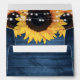 Personalized dusty blue rustic wood and sunflowers wedding envelopes with a return address. Our dusty blue envelopes feature sunflower flowers and string lights on a barn wood background. Matching items available.