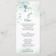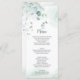 Dusty blue and sage green eucalyptus botanical wedding menu.