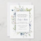 Winter flowers in shades of dusty blue, sage green, white, cream, and greys frame your wedding details in these fresh and new wedding invitations. The text boxes are easy to personalize using a mix of modern and calligraphy fonts in medium grey and dark dusty blue. The back of the card is dark dusty blue.