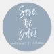Dusty Blue Hand Lettered Script Save the Date Sticker. The text of this hand lettered brush script sticker can be updated and customized with your name.