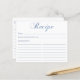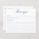This dusty blue elegant script bridal shower recipe card is perfect for any shower.  It has lots of lines for ingredients and the entire back is lines for directions.   Include one or two recipe cards with every shower invitation asking the guests to share their favourite recipe(s) with the bride. You'll be amazed at how varied the type of recipes will be and how grateful the bride will be to have a set of tried and true recipes to cook for her beloved groom.