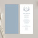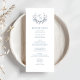 Elevate your wedding reception with this wedding menu card, featuring simple elegant calligraphy and a refined bride and groom monogram. Designed in stylish dusty blue, this reception dinner template showcases a classic wreath laurel motif with delicate greenery leaves foliage, adding a timeless and sophisticated touch to your rehearsal party table. The traditional typography design and classy ampersand initials create a personalized and elegant aesthetic. Perfect for a chic wedding setting
