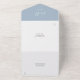 All in one wedding invitation featuring elegant hearts script typography and monogram initials on a dusty blue background. The invitation includes a perforated RSVP card that’s can be individually addressed or left blank for you to handwrite your guest's address details. Designed by Thisisnotme©
