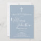 Featuring a script signature name on a dusty blue background and special photo on the reverse. Personalize with your special first holy communion information in chic lettering on this stylish design. Designed by Thisisnotme©