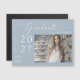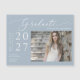 Yay ! Votre collège, lycée, collège/université, école de technologie, ou étudiant de programme d'études supérieures l'a fait et est diplômé! Célébrez l'un des moments précieux de leur vie et envoyez cette carte magnétique faire-part de graduation. L'aimant présente un style minimaliste moderne simple et élégant, avec de beaux scripts de calligraphie sur un arrière - plan bleu poussiéreux et la photo du diplômé. Il suffit de customiser et de remplacer le texte et les photos dans la zone de personnalisation. Remarque : les phrases élégantes du script de calligraphie "diplômé" ainsi que les lignes et autres illustrations graphiques et éléments ne peuvent pas être modifiées, supprimées ou déplacées. Elles sont réparées.