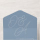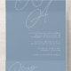 A beautiful typography based monogram wedding invitation featuring your initials in oversized script lettering at the top, in tone on tone shades for a watermark effect. Personalize with your wedding details in classic serif lettering aligned at the lower right. Our Dusty Blue colorway is an elegant mix of ethereal blues, with white and blue-grey lettering on a dusty medium blue background. Attached RSVP card and folding style makes this all-in-one invitation an appealing choice.