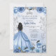 Dusty Blue Silver Floral Princess Quinceañera Invitation