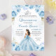 Dusty Blue & Silver Floral Princess Quinceañera Invitation