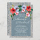 Dusty Blue Silver Glitter Watercolor Floral Arch Invitation